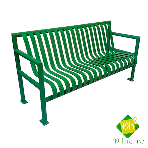 Banca metálica a base de acero al carbón en corte laser, marca "D'hierro" modelo BSD-03, con acabado en pintura electrostática en polvo horneada de alta resistencia a la intemperie, con pretratamiento de fosfato de zinc para anclar o ahogar en concreto.