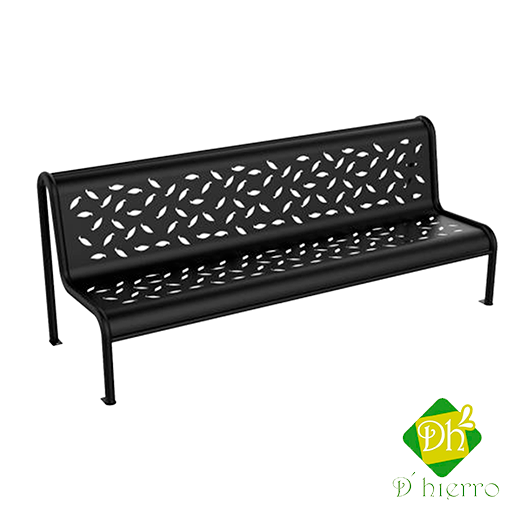 Banca metálica a base de acero al carbón en corte laser, marca "D'hierro" modelo ZAC-035, con acabado en pintura electrostática en polvo horneada de alta resistencia a la intemperie, con pretratamiento de fosfato de zinc para anclar o ahogar en concreto.