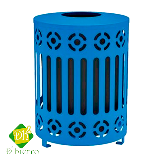 Contenedor para basura elaborado a base de lámina calibre 16 y ángulo de 1”, corte laser. Uso rudo con acabado en pintura electrostática horneada de alta resistencia a la intemperie, con pretratamiento de fosfato de zinc.