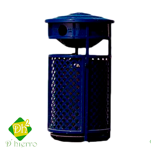 Contenedor para basura elaborado a base de lámina calibre 16 y tubo cuadrado de 1”, corte laser, con bote interno. Uso rudo con acabado en pintura electrostática horneada de alta resistencia a la intemperie, con pretratamiento de fosfato de zinc.