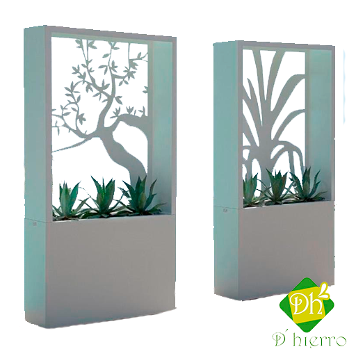 Macetero modelo pl-120, marca d´hierro, a base de placa de acero negro en corte laser cal. 16, con recubrimiento en pintura electrostatica horneada de alta resistencia a la intemperie, con pretratamiento de fosfato de zinc, colores disponibles: negro, chocolate, oxido, plata y blanco.