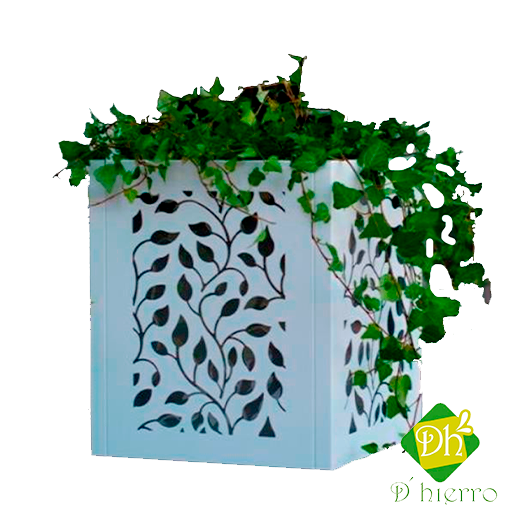 Macetero modelo pl-126, marca d´hierro, a base de placa de acero negro en corte laser, cal. 16, con macetero interno de lamina galvanizada, con recubrimiento en pintura electrostatica horneada de alta resistencia a la intemperie, con pretratamiento de fosfato de zinc, colores disponibles: negro, chocolate, oxido, plata y blanco.