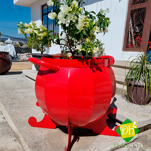 Macetero, a base de placa de acero en corte laser, cal. 16, con recubrimiento en pintura electrostatica horneada, de alta resistencia a la intemperie, con pretratamiento de fosfato de zinc, colores disponibles: negro, chocolate, oxido, plata y blanco.