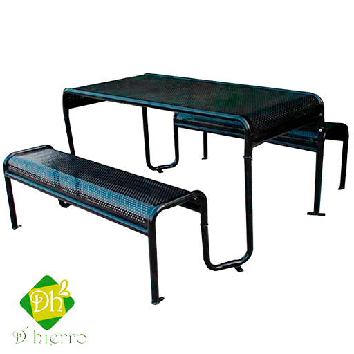 mesa de picnic marca d'hierro modelo pc-016, rectangular, con cubierta de malla y acabado en pintura en polvo horneada de alta resistencia a la intemperie, con pretratamiento de fosfato de zinc.